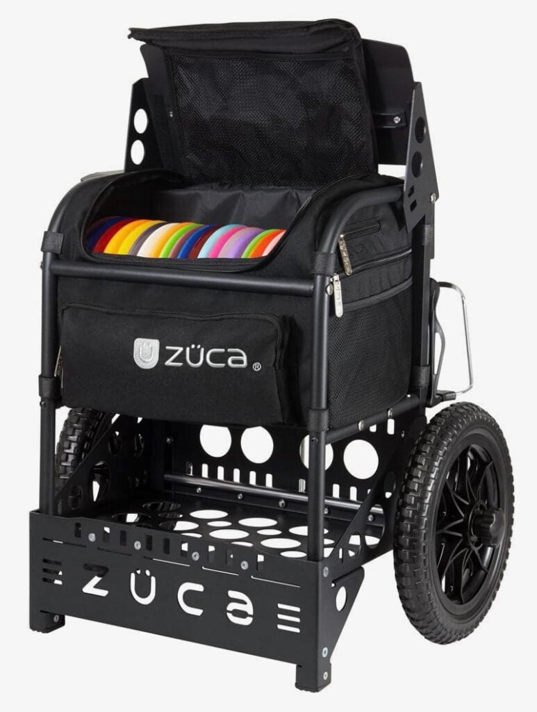 Next on the list of heavy hitters are carts! ZUCA cards are some of the most beloved accessories in the game! Carts are great for taking the load and strain off the back and shoulders! ZUCA carts range in price from around $200 to $400 depending on your style and size! My personal favorite cart is the EZ Cart which is a wheeled frame that I can easily slip my GRIPeq MB-PX1 on top of and roll around! Non–backpack carts are great options for those who rarely ever use a backpack! They offer ample storage, seating and all-terrain wheels for gliding across the course.
